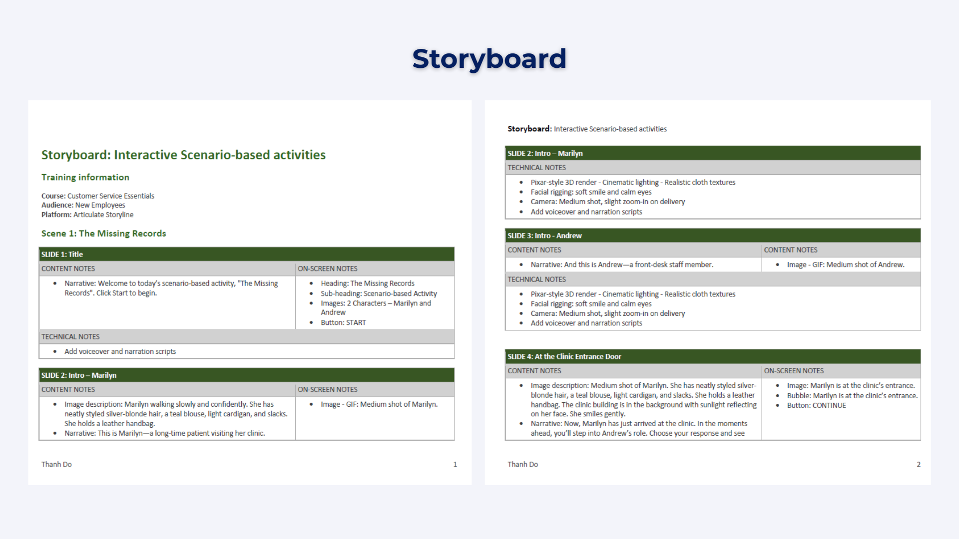 However, after examining the emotional complexity of real clinic interactions, I recognized the need for a richer learning experience. I redesigned the scenario to include two fully developed, interactive characters, allowing for dynamic dialogue, tonal variation, and more authentic, practice‑based decision making within the eLearning experience.